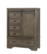 The Abner chifferobe combines safety, convenience and style to create a high-quality addition to your youngster's bedroom. The simple picture frame moulding detail and brushed pewter finish add to the refined aesthetic, and features shelving hidden behind the sliding barn-style doors. Spacious, full-extension drawers, opens with ease, so storing belongings is a breeze. This product has been tested for harmful materials and approved by organizations like the Juvenile Products Manufacturer Association, to you can be sure your child's bedroom is as safe as can be. Customer assembly is required.