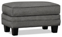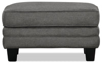 - Medium grey fabric covers the ottoman for a durable yet stylish feel.