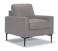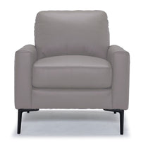Your space has never looked more stylish with the Arcadia collection. The Arcadia Leather Chair was crafted with both quality and style at the forefront. This piece showcases a rich grey colour that is elegant but still welcoming. Its neutral colour also makes it a great choice if you'd like to pair it with other pieces with cool tones. Its straight arms exude a sense of refined elegance, while the clean lines of its silhouette adds dimension which will give your space an elevated look. This chair is not only beautiful but is crafted with materials of impeccable quality as it's made with 100% top grain leather and 100% hardwood, making this chair a piece that will last. Whether placed in a contemporary living room, a chic office space, or a tastefully designed lounge area, this contemporary piece stands as a testament to the fusion of aesthetics and functionality. It embodies the essence of modern design while offering the comfort and allure that the Arcadia collection easily provides.