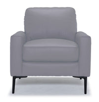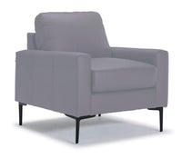 Your space has never looked more stylish with the Arcadia collection. The Arcadia Leather Chair was crafted with both quality and style at the forefront. This piece showcases a rich silver-grey colour that is elegant but still welcoming. Its neutral colour also makes it a great choice if you'd like to pair it with other pieces with cool tones. Its straight arms exude a sense of refined elegance, while the clean lines of its silhouette adds dimension which will give your space an elevated look. This chair is not only beautiful but is crafted with materials of impeccable quality as it's made with 100% top grain leather and 100% hardwood, making this chair a piece that will last. Whether placed in a contemporary living room, a chic office space, or a tastefully designed lounge area, this contemporary piece stands as a testament to the fusion of aesthetics and functionality. It embodies the essence of modern design while offering the comfort and allure that the Arcadia collection easily provides.