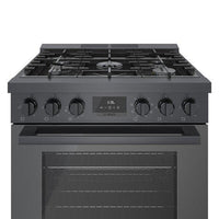 This Bosch industrial-style range combines a commercial appearance with powerful features that are designed to perform. Heavy-duty knobs give premium look and feel that is backed up by the genuine European convection, which provides even baking on multiple racks. Edge-to-edge cast iron grates allow you to easily slide heavy pots and pans, and are dishwasher-safe for an effortless cleanup. Exposed feet and a cool black stainless steel finish make this appliance a perfect addition to any modern kitchen.