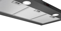 The Bosch black stainless steel chimney hood helps guard against scratches and fingerprints.