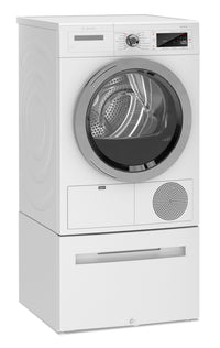 This dryer is the perfect companion to the Bosch 800 series washer, matching in quality, performance and neat white European design. Save space and open up floor room with the sold-separately stacking kit.