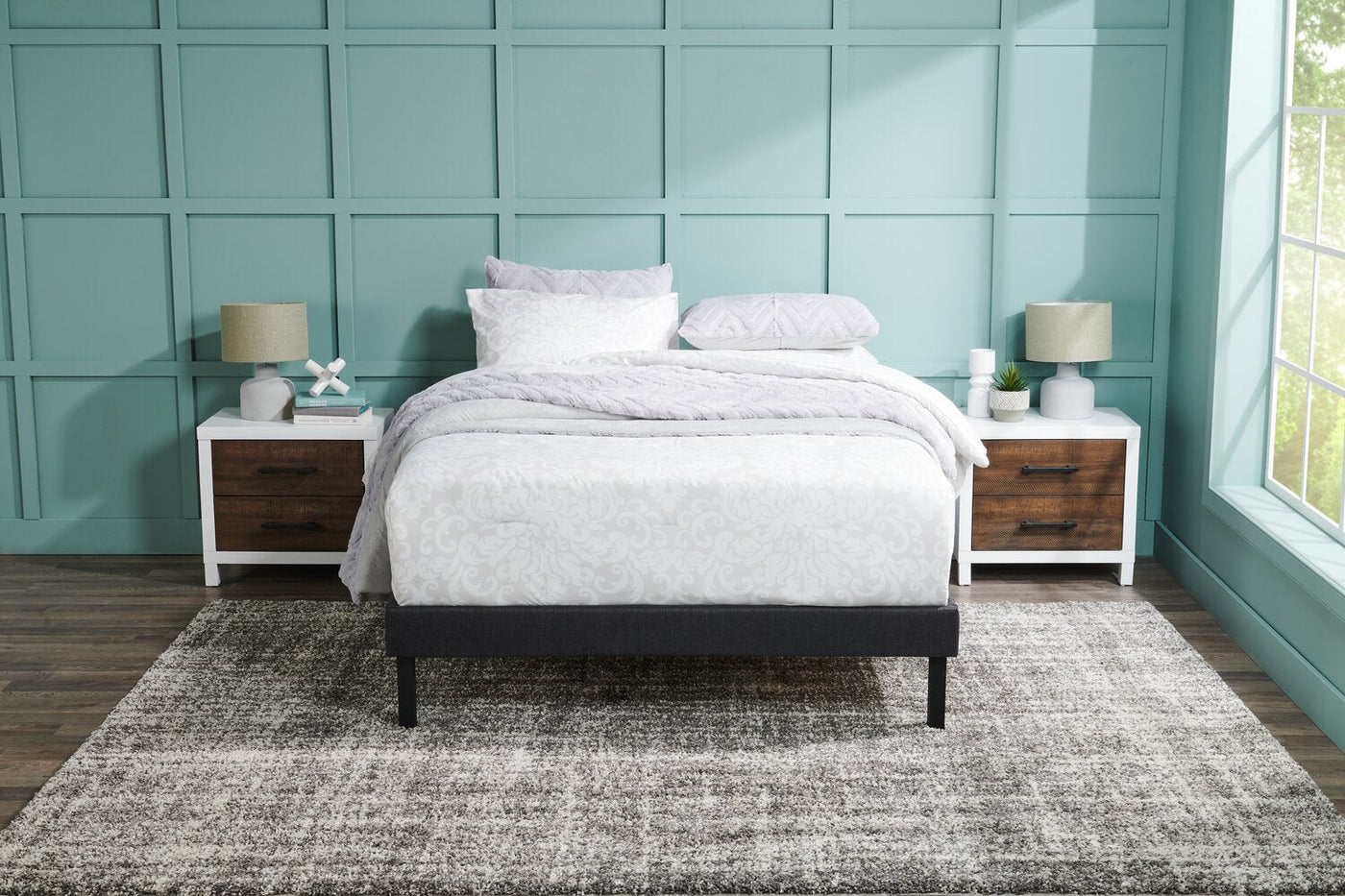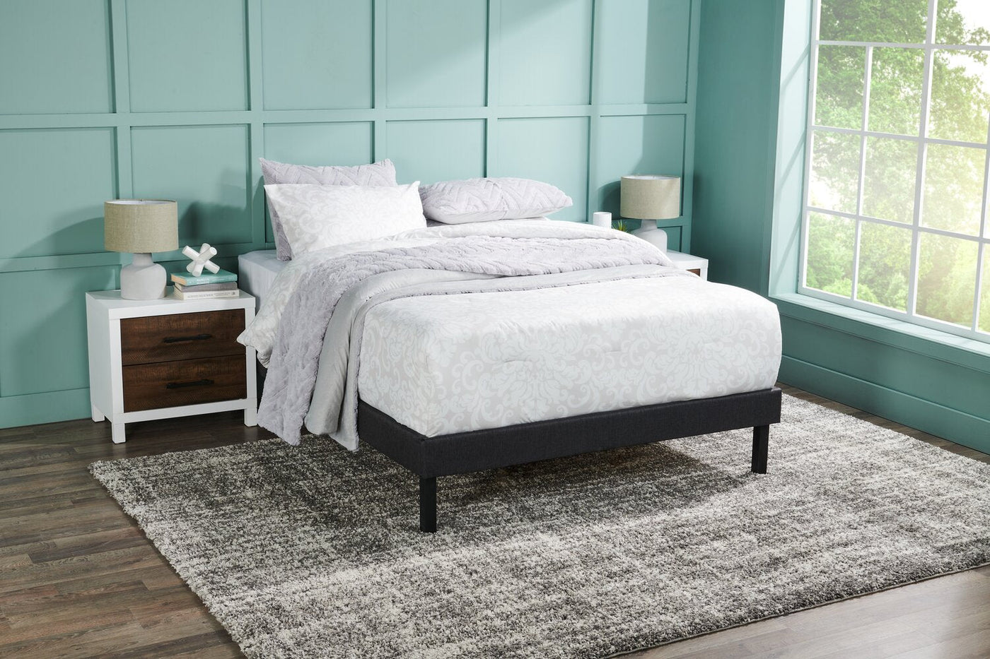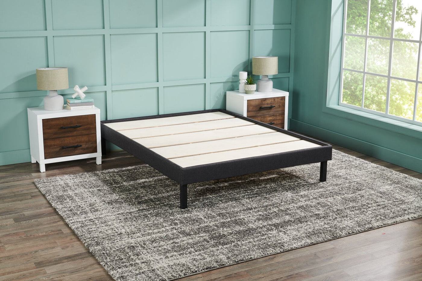 Sturdy and stylish, this black Breeze platform base is designed to provide excellent support for your mattress. Manufactured in Canada by Julien Beaudoin, this base is so easy to assemble that you'll have your new bedroom set up in no time. Its beautifully upholstered finish will create a warm and inviting sleeping space. Plus, it has seven inches of room under the platform for storage to limit clutter.