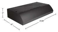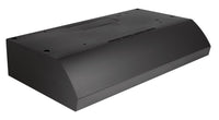 This under-cabinet range hood from Broan is ready to effortlessly clear your kitchen air. Gently rounded surfaces and a chic black finish provide a traditional yet stylish look for your space, while a dishwasher-safe filter and hidden controls make for easy cleaning. With 270 cubic feet per minute (CFM) of venting power and two fan speeds to choose from, smoke and odours are whisked away in a flash. Plus, the low volume level of only two sones at normal speed allows you to chat with dinner guests while the hood is running.