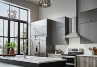 The telescopic flue extension easily accommodates eight- to nine-foot ceilings, plus it can be installed with or without ducting for flexible placement options (non-duct recirculation kit sold separately).