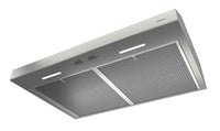 - Quiet range hood offering a sound level of 1.5 sones at low speed