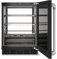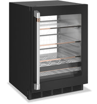 This stunning Café undercounter refrigerator chills beverages to perfection, so you’re always prepared to entertain. The capacity is large enough to hold 126 cans and 14 bottles, while magnum bottle storage lets you chill up to four 1.5-litre bottles of wine. An LED light wall spans the back of the unit, illuminating the entire interior from corner to corner. Plus, copper accented glass shelves add a touch of elegance visible through the triple pane glass door. Built-in Wi-Fi gives you control from anywhere via the SmartHQ app, so you can ensure your collection is always optimally chilled.