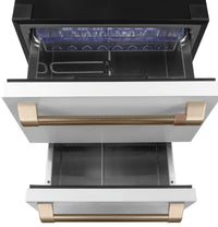 Storage Meets Style. Discover food storage in style with the Café Built-In Dual Drawer Fridge. Whether you’re looking for wine storage, or a to keep your fresh foods perfectly crisp, this drawer fridge helps you keep all you’re products at their ideal temperature. Sleekly designed and developed to give you that cold storage you need, without disturbing style, this fridge seamlessly blends in with your cabinets for a fun surprise whenever you need those extra products. Never one to steal away attention, the Café Built-In Dual Drawer Fridge even features soft close drawers that help it to keep a low profile in your home.