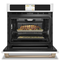This Café wall oven is a stage for your favourite recipes to sing. Behind a luxurious matte white finish, convenient features like no-preheat Air Fry and Precision Cooking Modes save time and help you execute every dish to perfection. Plus, an in-oven camera lets you remotely monitor the progress of dishes as they cook, so you can mingle with friends during dinner parties or connect with family on busy weeknights. It all adds up to a simplified cooking experience that delivers show-stopping results.