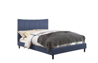 - Vertical accent stitching, a dipping headboard and soft fabric upholstery combine for a cool, contemporary look.
