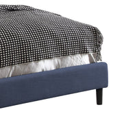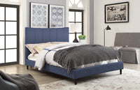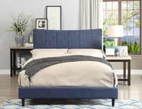 - Soothing fabric upholstery makes it easy to find complementary sheets and bedding.