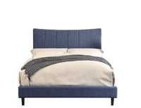Modernize your sleeping space with the coolness and comfort of this Caterina platform bed. Since the bedframe doesn't require a boxspring, you can keep a slim, low-profile look that exudes contemporary style. Building on that look is the vertical accent stitching along the dipping headboard. The subtlety of each detail is sure to make your other bedroom accents really pop. Finally, you'll lavish in the lush fabric upholstery wrapping around the entire exterior of this bed. Softness, style and shuteye – an ideal combination.