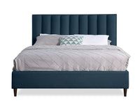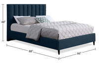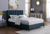Revitalize your sleep haven with this elegant blue Cresbard bed. The wavy look of the platform bed's headboard adds a chic touch to your bedroom. Soothing linen-look fabric wraps around the bed's wood frame, covering it in a peaceful blue hue to complement your room's existing decor. As well, several wood slats provide proper support for your mattress without using a boxspring. Create the cozy and modern sleep space of your dreams with this Cresbard bed.