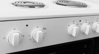 - Coil temperature limiting elements: 1x 7.5" (2,100W) for quick boiling and 3 x 6" (1,250W) coil elements white door with XL window.