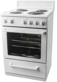 - Compact solution for small space living: 24″ free standing electric range with a large 2.5 cu. ft. oven capacity.
