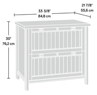 Give your home office an upgrade by creating a versatile workspace with this cottage-inspired Darrington filing cabinet. Blending together style and function, this two-drawer lateral organizer features full extension slides and holds letter or legal-sized hanging files. Its durable, one-inch-thick top is the perfect place for books, home decor and even a printer. With safety in mind, it includes a patented, interlocking mechanism that allows only one drawer open at a time to prevent toppling. Additionally, both drawers include a lock for secure storage of your documents. Detailed with framed, slat-front drawers, this stunning filing cabinet will give your office space a relaxing coastal vibe.