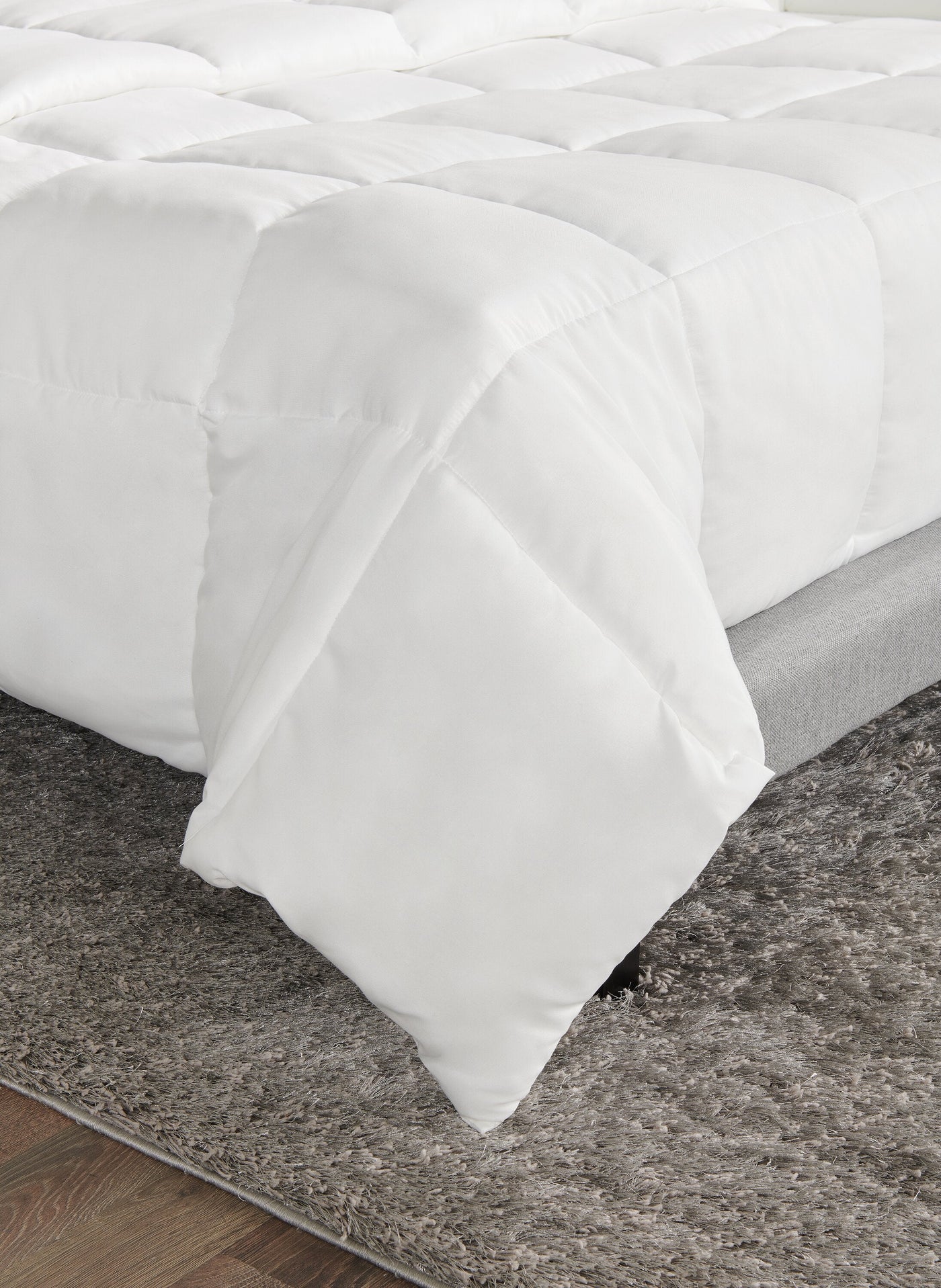 Snuggle into comfortable bedtime bliss with this twin duvet insert. Soft to the touch, this extra fluffy insert is made with fibre fill and microfibre for a cozy sleep night after night. Baffle box construction ensures the filling stays even, which makes it easier to make the bed and have the duvet lay nicely. Whether you opt to use it alone or inside of a duvet cover in a compatible size, this insert will bring your sleep setup to a new level.