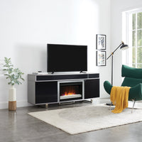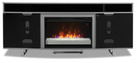 Edison 72" TV Stand with Glass Ember Firebox and Soundbar - Grey