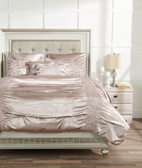 - Ruched detailing on both the comforter and pillows add a ravishing flair to this set.