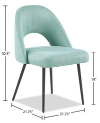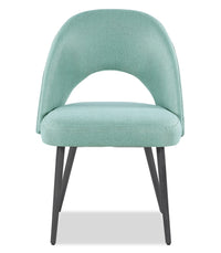 - Coloured fabric and black legs create a neutral base that goes well with most dining room styles.