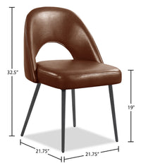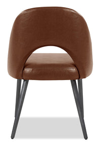 Add an extra spark of style to your dinner with this Elman dining chair. Faux leather wraps around high-density foam to create an over-stuffed seat you'll love to snuggle into. A rounded arch gently curves around to give your upper back and sides extra support, while creating an open space at the base of the seat. Pointed metal legs radiate out from the seat to keep you sitting securely in style. Add the Elman to your dining space and help make mealtime memories even brighter.