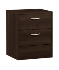 Add a contemporary upgrade to your bedroom with this distinctive Fletcher nightstand. The clean lines of the frame design and contrasting nickel-coloured handles bring modern sophistication to your space. Pull open one of the two deep drawers to keep your bedtime essentials close at hand. Engineered wood gives you the best of both style and affordability, so rest easy knowing this Fletcher nightstand will be your bedside storage piece de résistance.