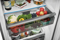 - SpaceWise® Organization System - Easily organize your family's favorites with our metallic-trimmed glass shelves, spacious dark tinted door bins with metallic trim, large crisper drawer, and a full-width slide-out shelf.