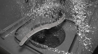 A stainless steel blade rotates at 3,600 RPM to blast through food and help prevent large particles from clogging the wash arms.