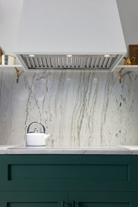 An included remote control allows for simple activation and adjustments of the fan from anywhere in the kitchen.
