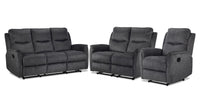 Glenmore Reclining Sofa, Reclining Loveseat and Recliner Set - Charcoal