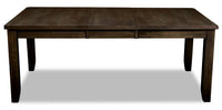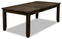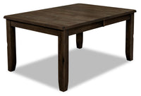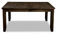 Settle in for a relaxing dinner with the simplicity of the Hesparia grey brown dining table. A weathered, dark grey finish highlights the natural grain of the mango wood veneers. Thick legs of solid rubberwood stand tall to help keep your table sturdy through even the liveliest dinner party. Expecting company? Drop the removable leaf in to extend the table surface by another 18 inches to make space for more guests. Add the Hesparia to your dining space, and make your next family meal one to remember.