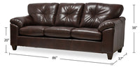Embrace luxurious living with this elegant Irene sofa. Thanks to an elevated traditional design and refined look, this piece will make for a charming addition to any family room. Rest comfortably on the generously padded cushions and enjoy the lush, cool feel of the Leath-Aire fabric. The pillow-top armrests welcome you to curl up, while the tufted back and stitching details create a grounded and calm appearance. With a deep brown tone and neutral, blocky legs, this sofa will complement your existing decor beautifully. Make your living room the heart of your home with the Irene.