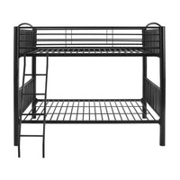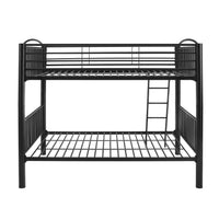 - It includes full-length guardrails and an integrated angled ladder that offers easy and safe access to the top bunk without obstructing the open space of the bottom bed.