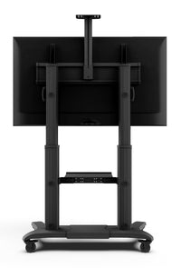 Modernize your school or office with the Kanto MTMA100PL rolling TV stand. Designed to safely support up to 200 pounds, the stand is built with high-grade aluminum to provide a lightweight, fully portable TV mounting solution. Quick to assemble, this TV mount features 12 inches of height adjustment, as well as integrated cable management to ensure a clean and professional looking mobile mount setup. The camera shelf and adaptable device tray allows you to conveniently carry your equipment, while two handles and four wheel-locks ensure maximum stability.