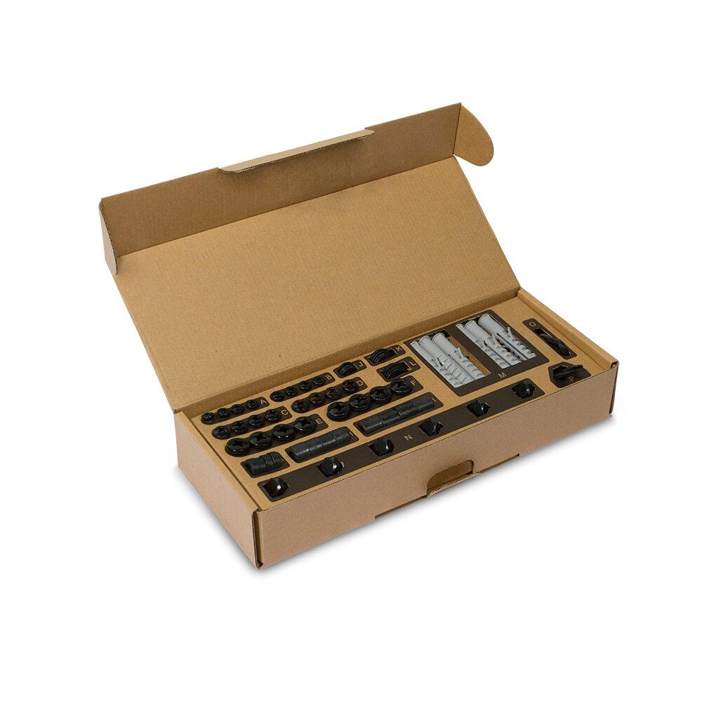The Kanto PDC650 corner TV wall mount comes with a convenient bolt box containing all the lag bolts, anchors, washers and spacers you’ll need to safely mount your TV.