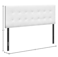 - Button-tufted upholstered headboard in a white leather-look fabric brings chic style and extra comfort to your sleep space.