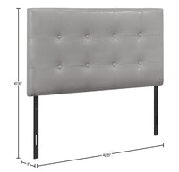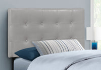 - Button-tufted upholstered headboard in a grey leather-look fabric brings chic style and extra comfort to your sleep space.