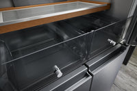 This KitchenAid four-door refrigerator offers incredible storage and premium looks to take your kitchen to the next level. The bottom right compartment acts as a custom freeze zone that can be used as either extra fridge or freezer space to suit your needs. Plus, enjoy the flexibility to keep ingredients organized and within reach using the sliding storage trays featured throughout. Touch panel controls put refrigeration functions at your fingertips, while the interior design features a platinum-coloured finish, metallic accents and tinted glass drawers and bins to truly set this fridge apart from the rest.
