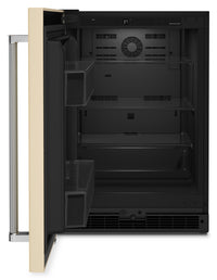 This KitchenAid under-counter fridge introduces an exciting new feature to your kitchen. With panel-ready construction, this appliance can be customized to camouflage itself with surrounding cabinetry for a hidden surprise. Inside, interior lighting brightly displays all of your hosting essentials from party platters to pitchers of chilled punch. This model is equipped with a temperature monitoring system which senses and alerts to fluctuations, so you know your hors d’oeuvres and appetizers will always be reliably cooled and ready to serve.