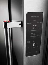 This KitchenAid French door refrigerator has a sleek finish and plenty of features to help make food organization and prep as easy as pie. Featuring a patented PrintShield finish, this stainless steel is treated to resist smudges and fingerprints, allowing you to clean the exterior with water and a soft cloth, for less headaches in the kitchen. Counter depth allows this fridge to fit right in with your cabinetry, for a custom look and feel.