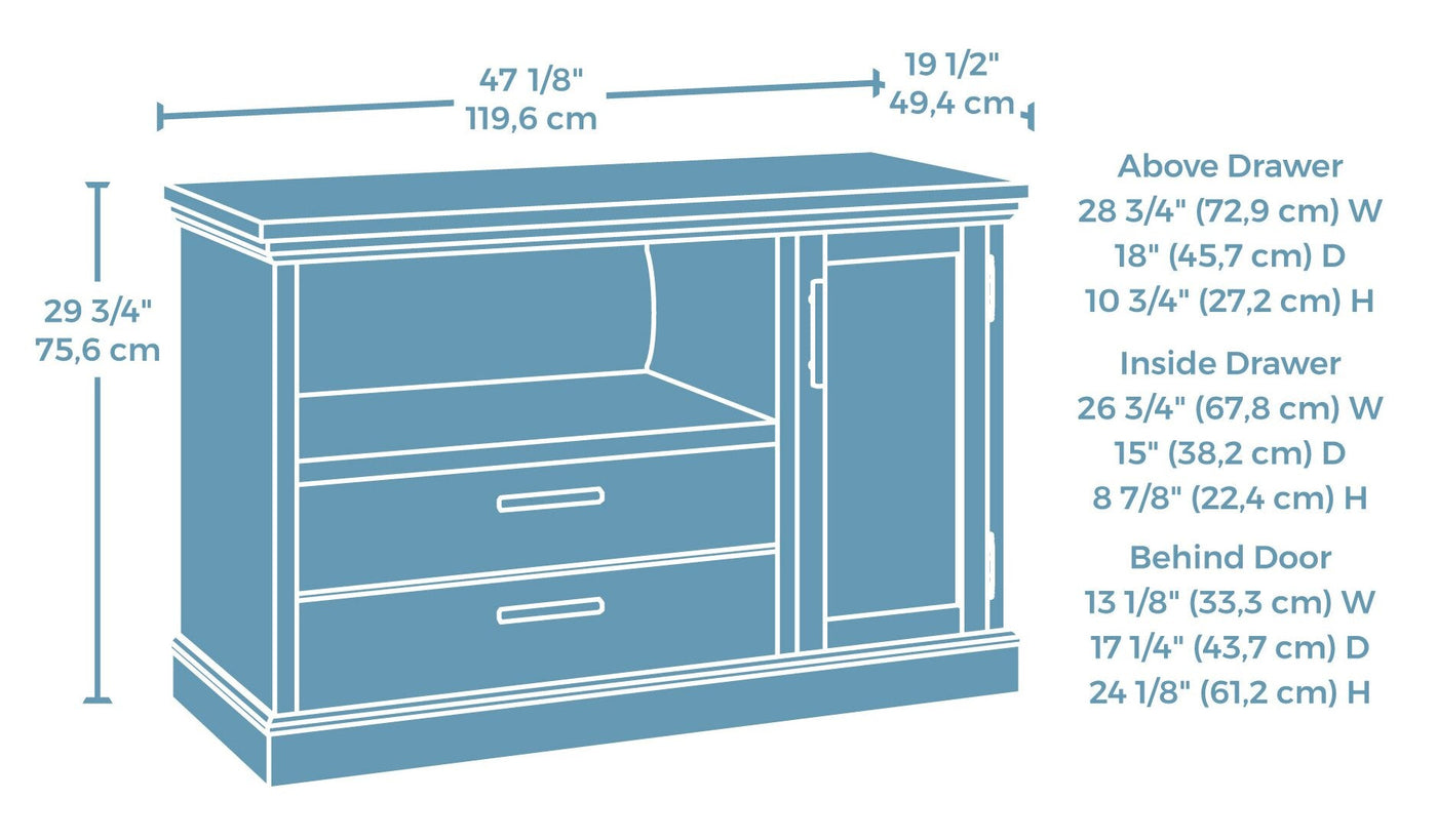 Expand storage capabilities in your office with this Lake Stone credenza. This piece features a durable heat-, stain- and scratch-resistant top surface to place your favourite books, prized family photos or next week's to-do list. An open shelf is the perfect spot for folders, while an adjustable shelf behind the door allows the flexibility to accommodate items of various heights. Plus, a file drawer holds letter- or legal-size hanging files, keeping your documents organized. Finished in a light, natural tone, this credenza seamlessly adds a touch of a modern farmhouse aesthetic to your office.