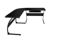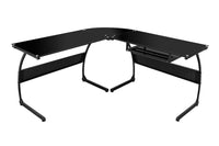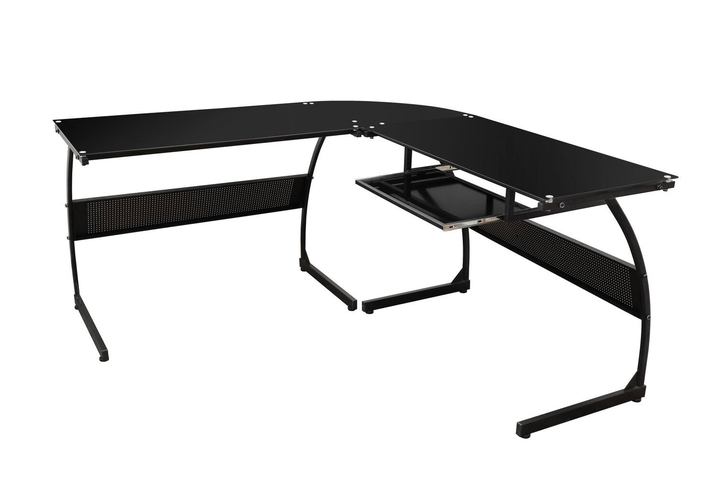 Give yourself all the space you need with this sleek and smooth Lazar desk. This wide L-shaped desk can be placed in the corner where the broad glass tabletops provide plenty of room for your computer and work materials. The black tempered glass looks elegant and is easy to clean, while the keyboard tray below the tabletop frees up even more space. Supported by a sturdy black metal frame, this desk looks elegant while keeping everything within reach.
