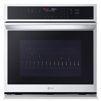 Experience next level culinary creations with this LG wall oven. Convection cooking provides even results on every rack, while Air Fry creates perfectly crispy wings and fries for your next party. Smart capabilities allow you to monitor and control the appliance using your smartphone and voice control for ultimate convenience. Plus, SmoothTouch controls, a smudge resistant stainless steel finish and EasyClean® option make it a breeze to keep both the inside and outside of this oven sparkling.