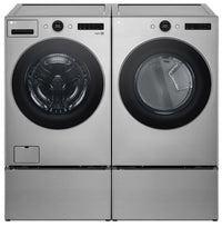 This LG washer and dryer duo offers smart capabilities to make laundry day a breeze. Thanks to built-in Wi-Fi, you can control this pair from your smartphone to have your laundry ready when you are. Plus, the washer and dryer can be linked using the ThinQ® app for optimal cycle selection with Smart Pairing. Both machines feature extra spacious capacities, so you’ll be able to run larger loads at once to save time. TurboWash® 360 powers through fabrics with multiple jet sprays, while TurboSteam Technology in the dryer refreshes your garments between washes for a clean you can feel.