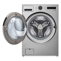 This LG smart front-load washer provides power and convenience for even the toughest laundry tasks. The spacious interior capacity easily handles family-sized loads, while a digital control dial makes cycle selection a breeze. Plus, TurboWash 360 uses multiple jet sprays to power through larger loads in less time. Thanks to built-in Wi-Fi, you can control this machine from your smartphone to have your laundry ready when you are. The modern flat front design, graphite steel finish and tinted, tempered glass doors bring a premium point of view to your laundry space.