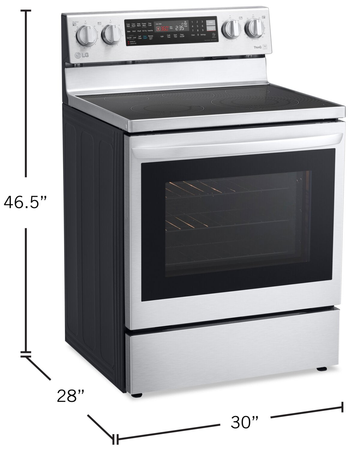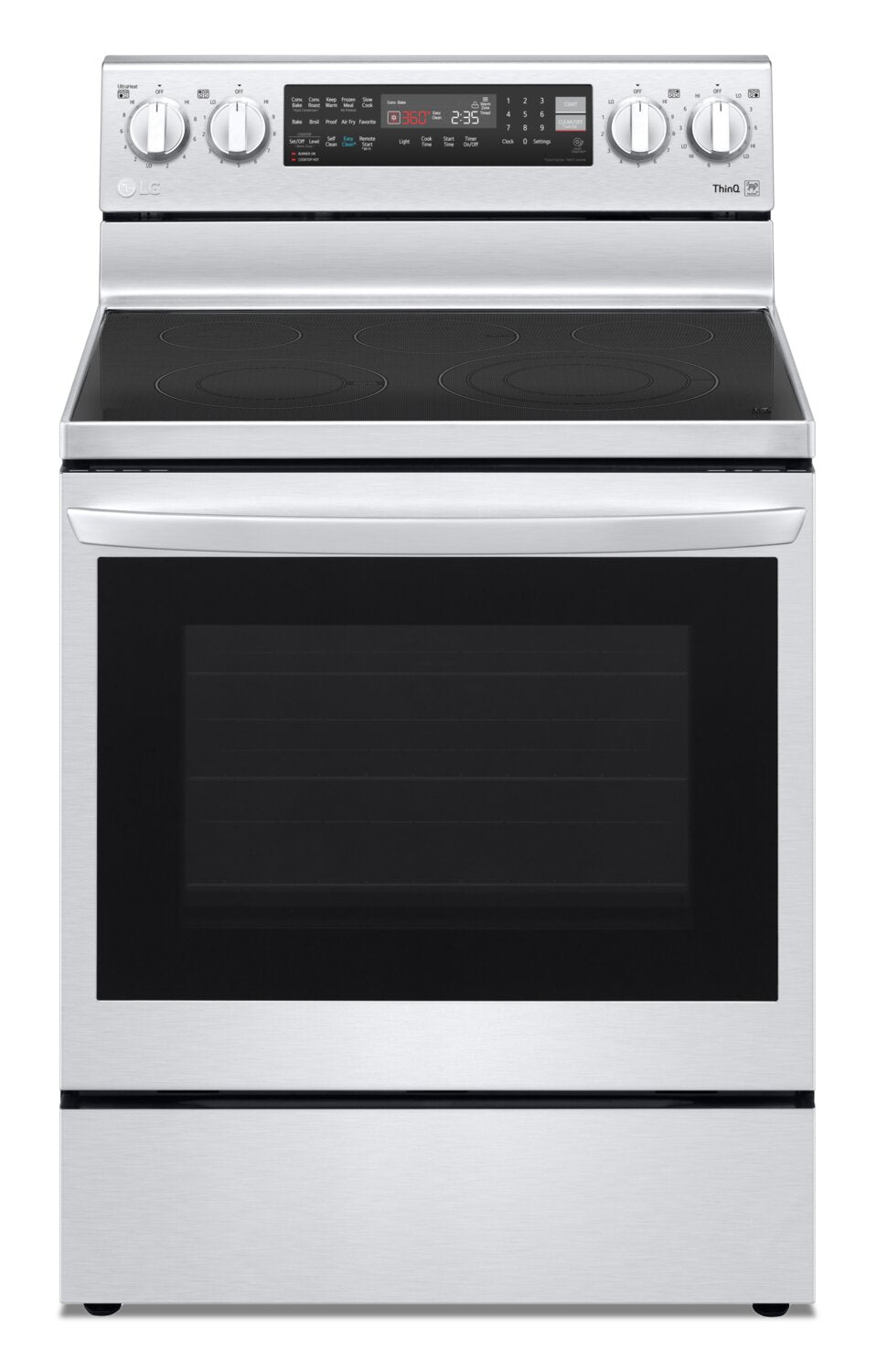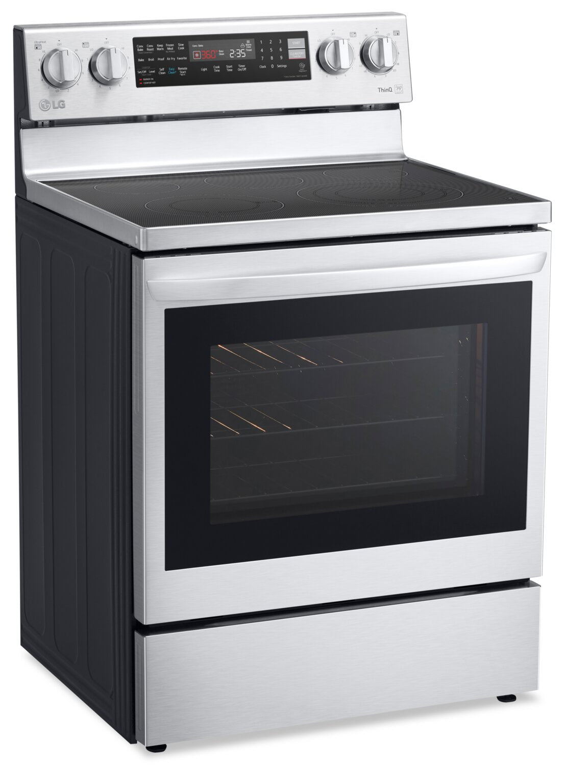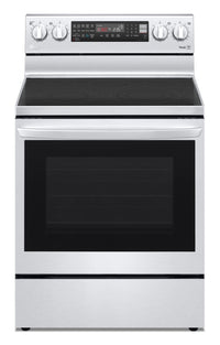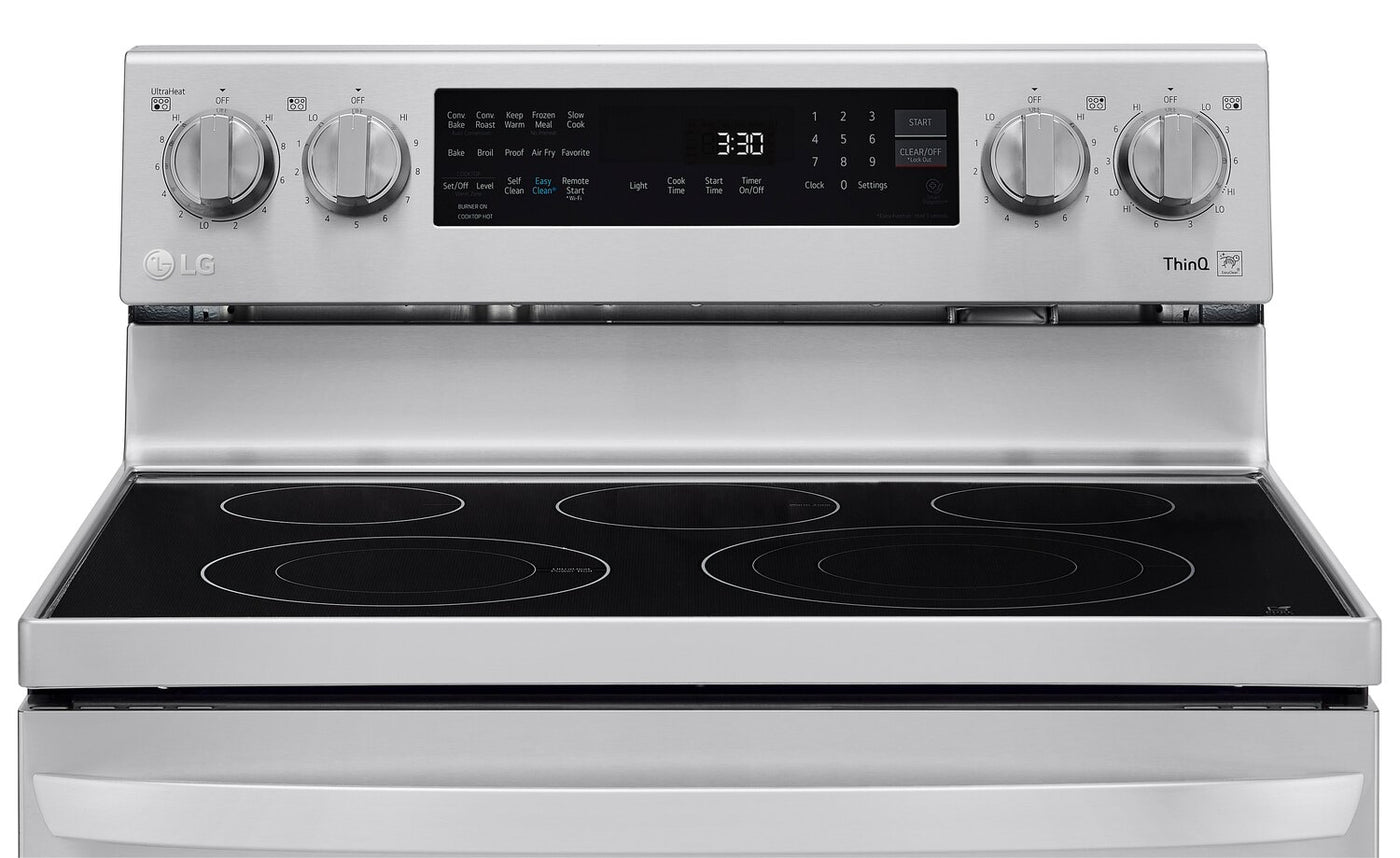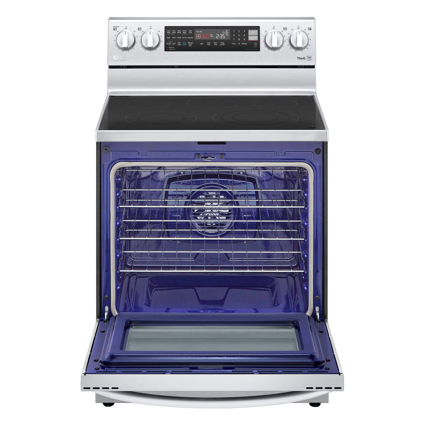 With this LG electric range, you will always be cooking with confidence. The latest addition to your kitchen is designed for smooth operation and with practicality in mind. Convection allows baking with ease as heat distribution is even and precise. Make food that’s delicious on the inside, and crisp on the outside. Handle your everyday messes in style with a cooktop whose smooth surface and smudge-resistant finish easily wipes clean with a soft, dry cloth. Also, you can check on your dishes from any room in your home with the ThinQ® app.