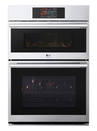 For convenience, style and cooking features galore, look to this LG STUDIO double wall oven. Make use of the steam cooking and Sous Vide modes to prepare deliciously tender steaks – or enjoy perfectly crispy wings and fries for your next party using Air Fry. With the large InstaView window, all you have to do is knock to get a good look at what’s cooking inside. Plus, the gorgeous full-colour LCD screen displays over 40 meals to help expand your recipe repertoire, and is sleek, contemporary and easy to clean.