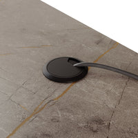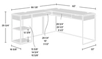 This Liano L-shaped desk is an addition to your home office that packs a punch. It features two small drawers with metal runners and safety stops to conveniently store your favourite office essentials like pencils and to-do lists. A mix of cubbyholes and lower shelves provide additional storage for binders, books and more – all at the ready when you need them. Three cord management grommets ensure your desk will be free of cord clutter. A powder-coated metal frame and umber wood finish create a polished look, while the Deco stone top with gold accents creates a dazzling look that will have you working in style.
