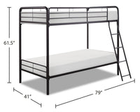 The Menagh bunk bed is the perfect way to maximize sleep space in your child’s bedroom, creating efficient flow and plenty of room to play. The twin-over-twin configuration is designed to meet the needs of your available space, while the open metal frame keeps your kiddo’s bedroom feeling bright and uncluttered. The tubular metal structure of the frame is finished in dark bronze, bringing a neutral complement to your decor that will stay in style as your children grow.